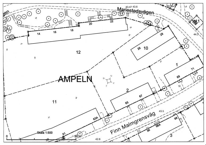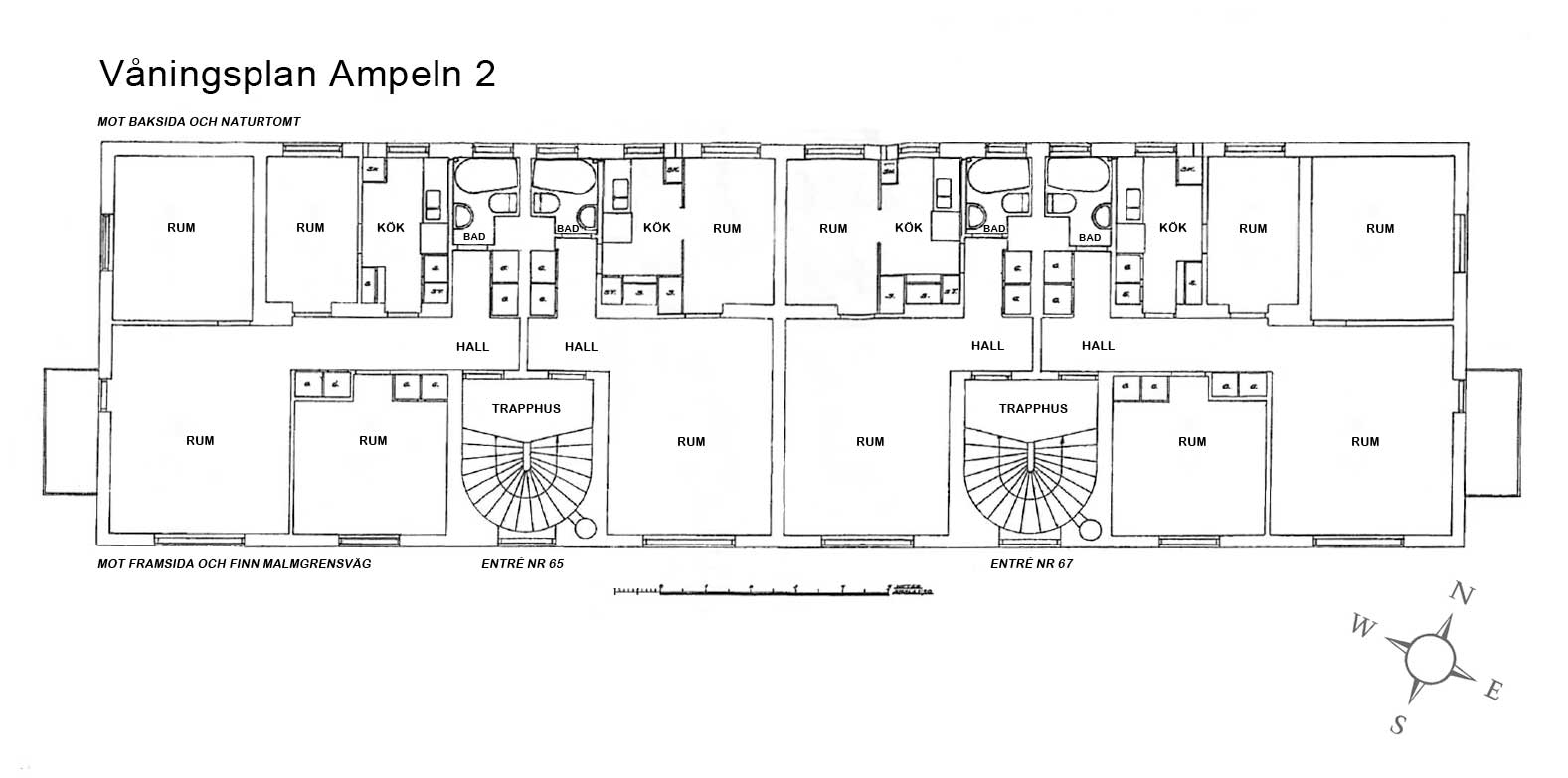 Brf Ampeln 2 bildades den 15 juli 2011 och förvärvade fastigheten Ampeln 2 den 6 februari 2013. Föreningen omfattar fastigheten Ampeln 2 med en totalyta på 914 kvm varav 712 kvm är lägenhetsyta. Vi har en fastighet med två trapphus-adresser: Finn Malmgrens väg 65 och 67.