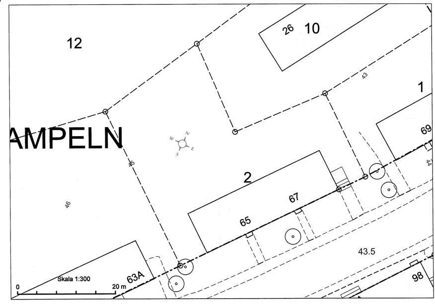 på 1213 kvm som arrenderas av Stockholm Stad. Det är en härlig naturtomt med fullvuxna träd och fint kuperad mark. Enligt lagd detaljplan ingår inte marken framför huset mot gatan i vårt arrendeavtal. Den delen förvaltas och underhålls av Stockholm Stad.
